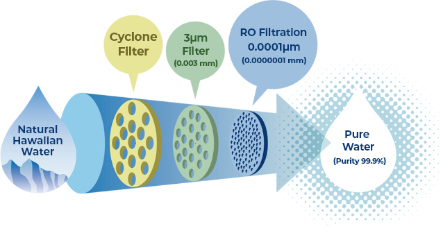 “Pure Hawaiian Water” is purified to 99.9% purity using advanced reverse osmosis (RO) technology originally developed by NASA. This process removes all minerals and impurities, including microorganisms and viruses, delivering exceptionally clean, crisp water. Our water is safe and gentle for everyone—from nā pēpē (babies) to kūpuna (elders) and those with sensitive health needs.